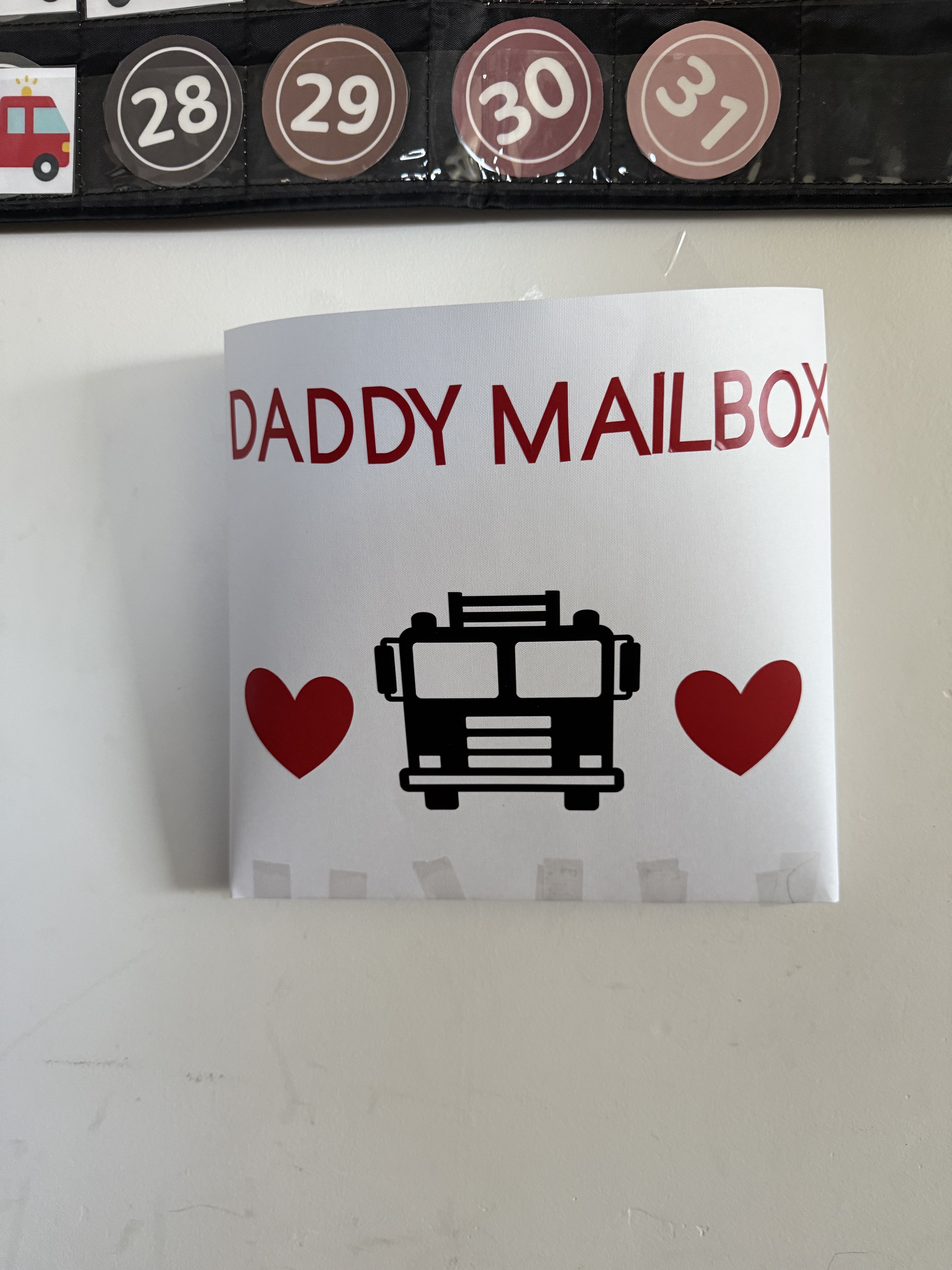 As a fire family, we spend a lot of days, and sometimes weeks, without Dad at home. Creating a “Daddy Mailbox” has given my kids something special to look forward to and a dedicated place to put little notes, drawings, and memories for him. It’s been such a simple but meaningful way to stay connected, even when he’s away for long stretches.