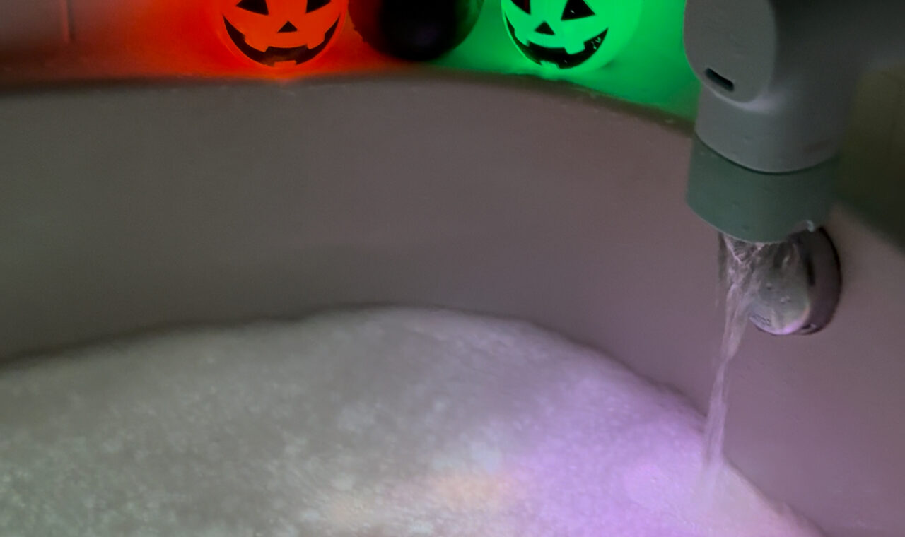 Before we jump into the Halloween fun, I have to share something that’s made the biggest difference in our baths: the Canopy Bath Filter (my link gets you 15% off!).